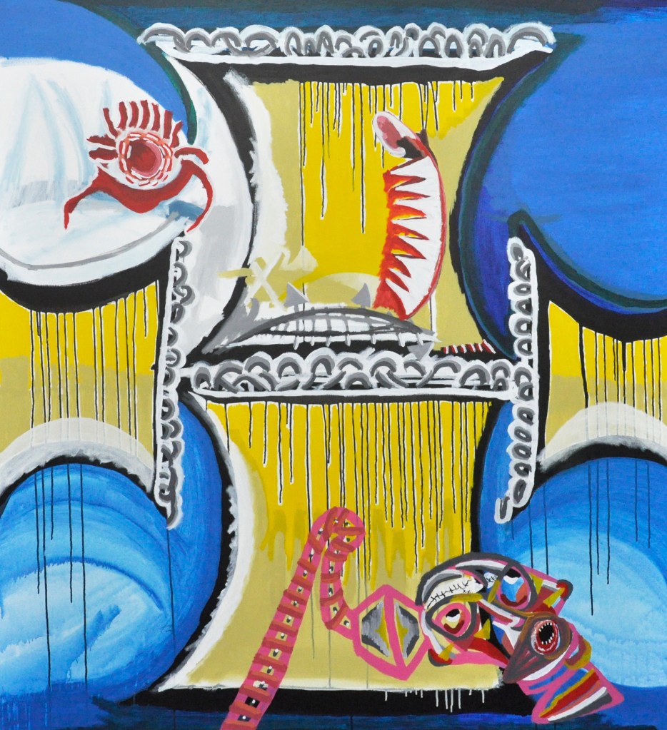 Anthony Mannix, Page from Journal of a Madman No. 7, 1989. Photo: Dr Gareth Jenkins.Michael Camakaris, Pre, 2017, acrylic on canvas, 168 x 153 cm. Image courtesy of Arts Project Australia.Michael Camakaris, Post, 2017, acrylic on canvas, 168 x 153 cm. Image courtesy of Arts Project Australia.Mark Smith, Welcome, 2018, calico, cotton thread and stuffing, 110 x 55 x 34 cm. Monash University Museum of Art Collection. Image courtesy of Arts Project Australia. Lisa Reid, Peter Fay, 2007, acrylic on canvas, 177 x 151.5 cm. Image courtesy of Arts Project Australia.Paul Hodges, The Wave, 2017, acrylic on canvas, 168 x 153 cm. Image courtesy of Arts Project Australia.
